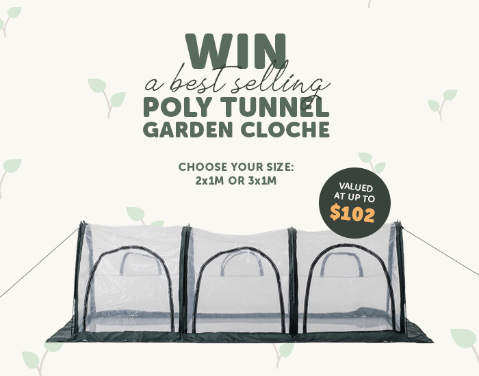 Get yourself in the draw to WIN a best-selling Poly Tunnel garden cloche! A must-have for the cooler months, our Poly Tunnels are designed to give your seedlings & plants a localised micro-climate of their own. They are also great for protecting your crops from wind, heavy rain and various pests. Prize valued at up to $102 RRP!